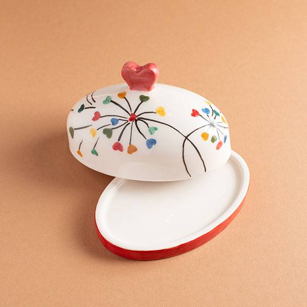 Այս նուրբ կարագամանը՝ պատրաստված բարձրորակ կերամիկայից, հիացնում է իր ռոմանտիկ տեսքով։ Այն ավելին է, քան պարզապես սպասքը. այս կերամիկական կարագամանը սեղանին հաղորդում է ջերմություն, նրբաճաշակություն և սիրո շունչ։