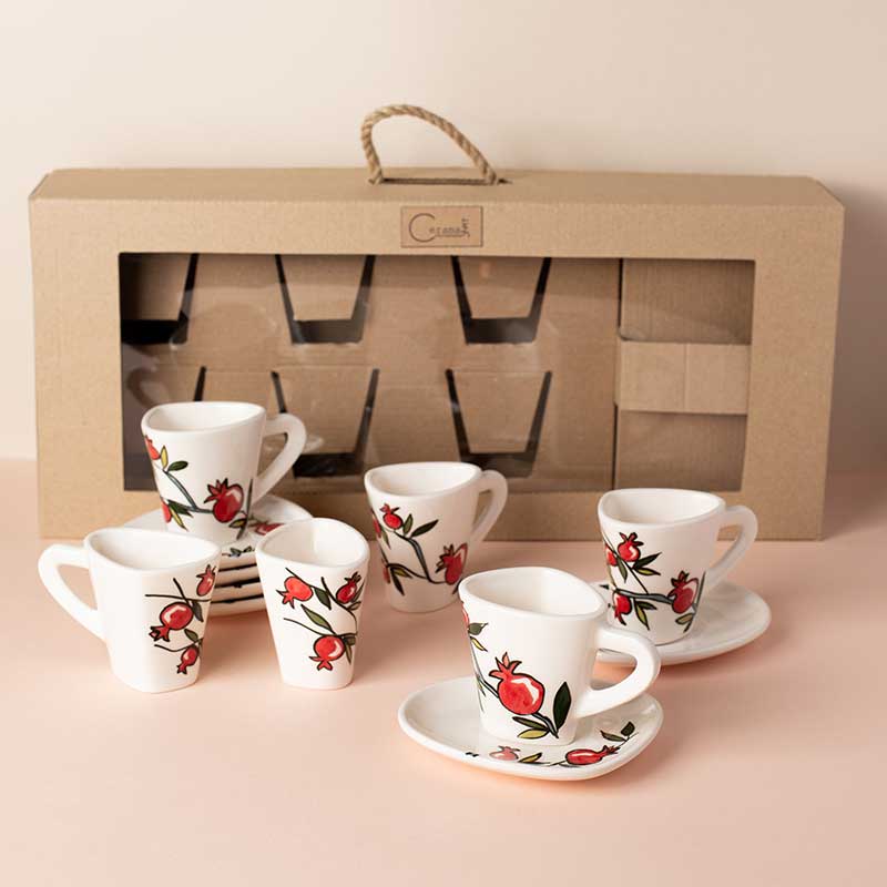 Ձեռագործ կերամիկական սուրճի բաժակ և ափսե՝ Նռներ