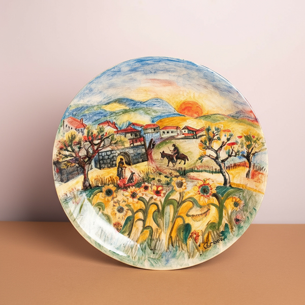 Այս յուրահատուկ ձեռագործ հավաքածուն՝ բաղկացած կերամիկական ծաղկամանից և դեկորատիվ ափսեից, ներկայացնում է հայկական գյուղական կյանքի գունավոր ու ջերմ աշխարհը։ Ամեն մի դետալ՝ սաղարթոտ ծառերից ու արևաշող սարերից մինչև գյուղի տները, ձիավորն ու մայրամուտի փայլը, ստեղծված է մանրակրկիտ ձեռքի աշխատանքով՝ դարձնելով յուրաքանչյուր կտոր իրական արվեստի ստեղծագործություն։